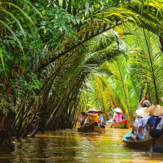 After 2 hours arrival in My Tho , take a boat trip along the Mekong river and around a fishing village and some islands.